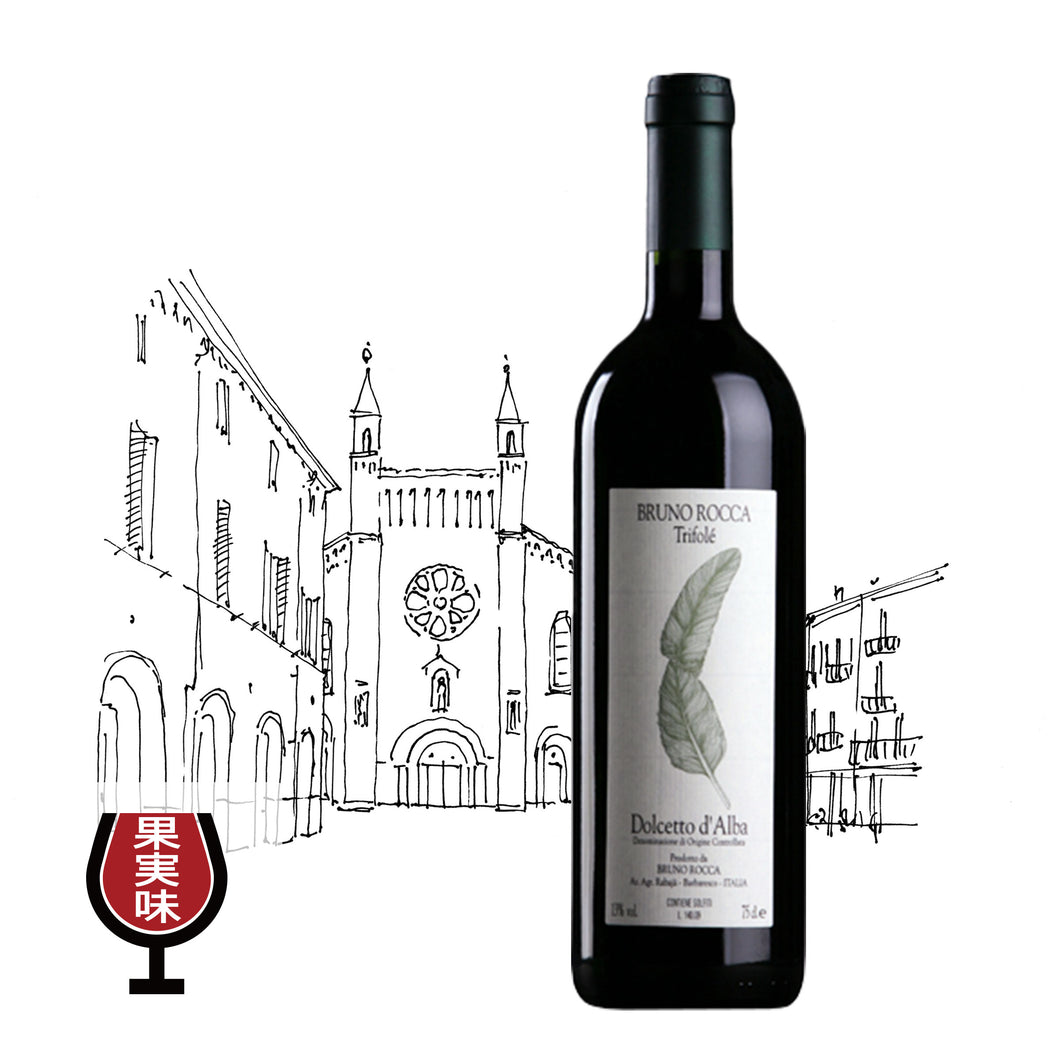 バルバレスコ村にあるトリフォレ畑。ラバヤの下部にある畑で青いトゥフォだがラバヤよりも粘土が強く出ている。ドルチェットとしては少ない50hl/haの収量。ステンレスタンクで7日程度の短い醗酵。移し替えてステンレスタンクのみで10ヶ月熟成。フレッシュで果実の甘味が味わえる。